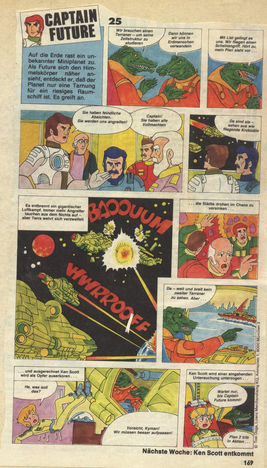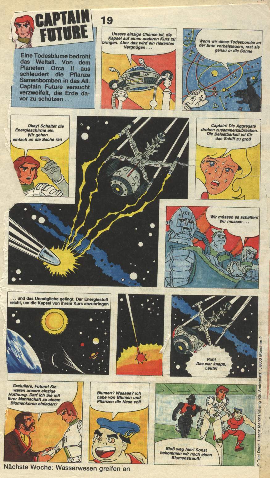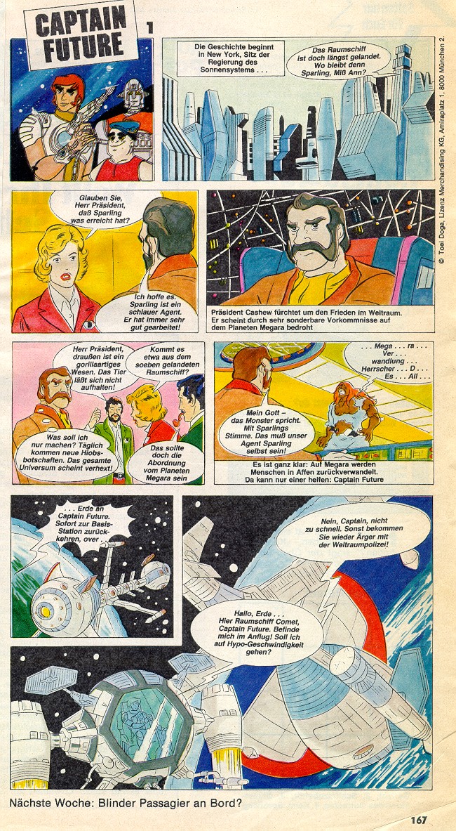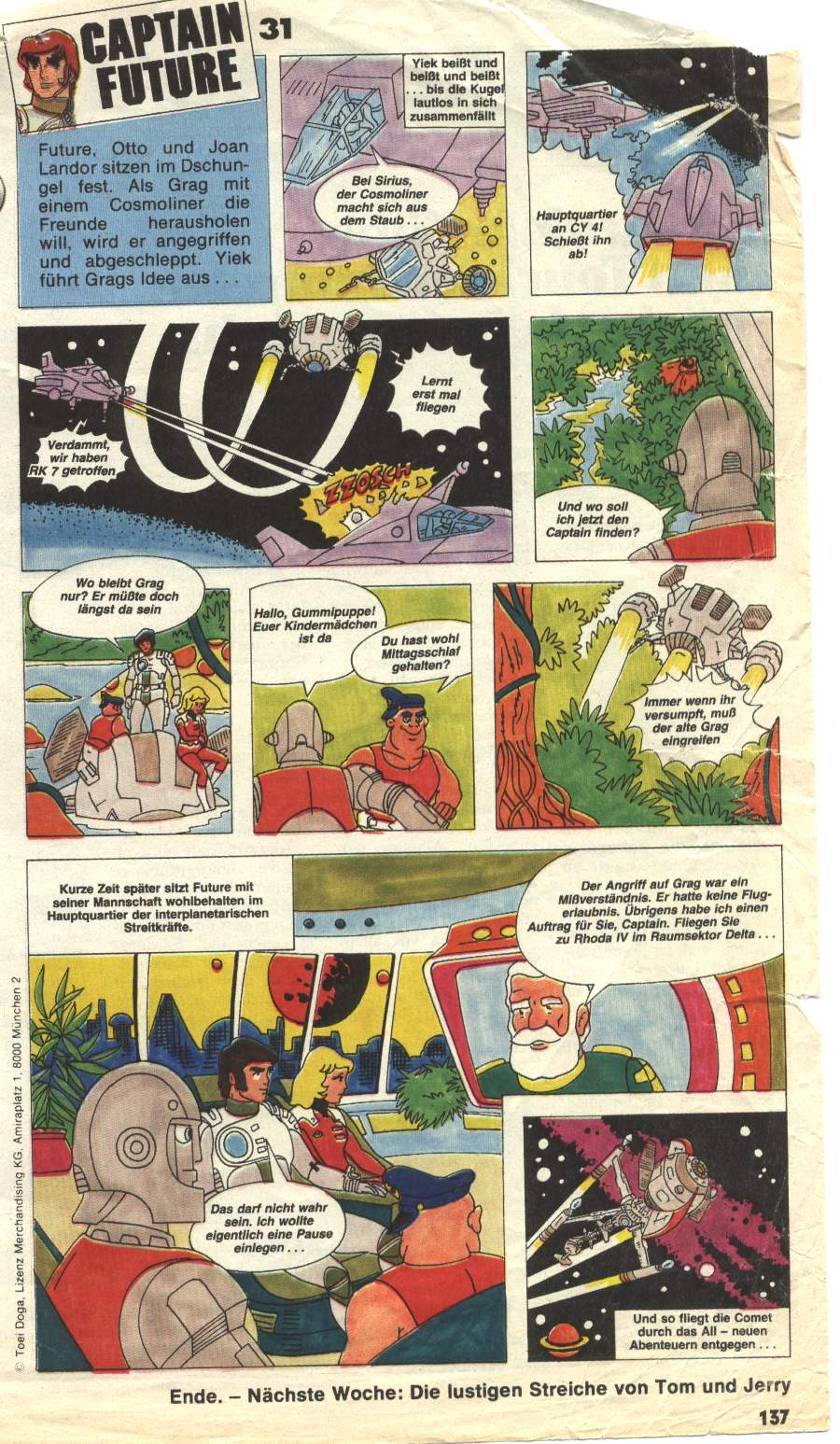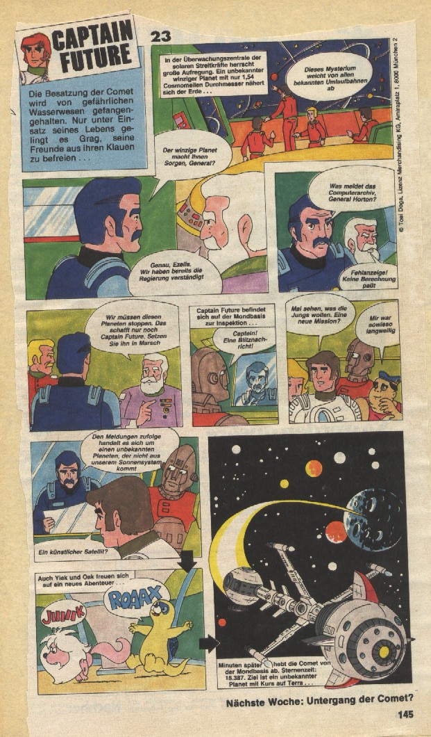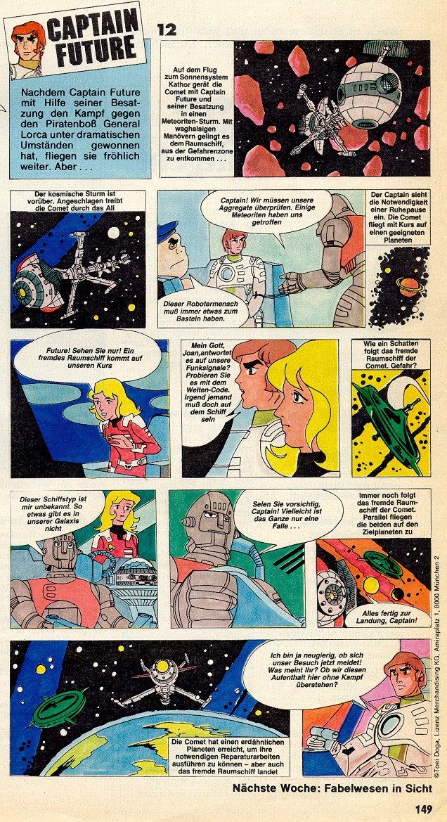 Mit der Erstausstrahlung von Captain Future Anfang der 80er Jahre wurden in der Fernsehprogrammzeitschrift 'Hörzu' 1-seitige Fortsetzungsgeschichten veröffentlicht.