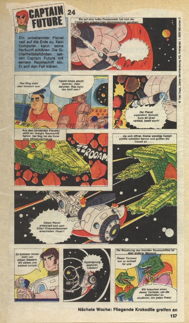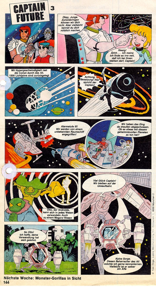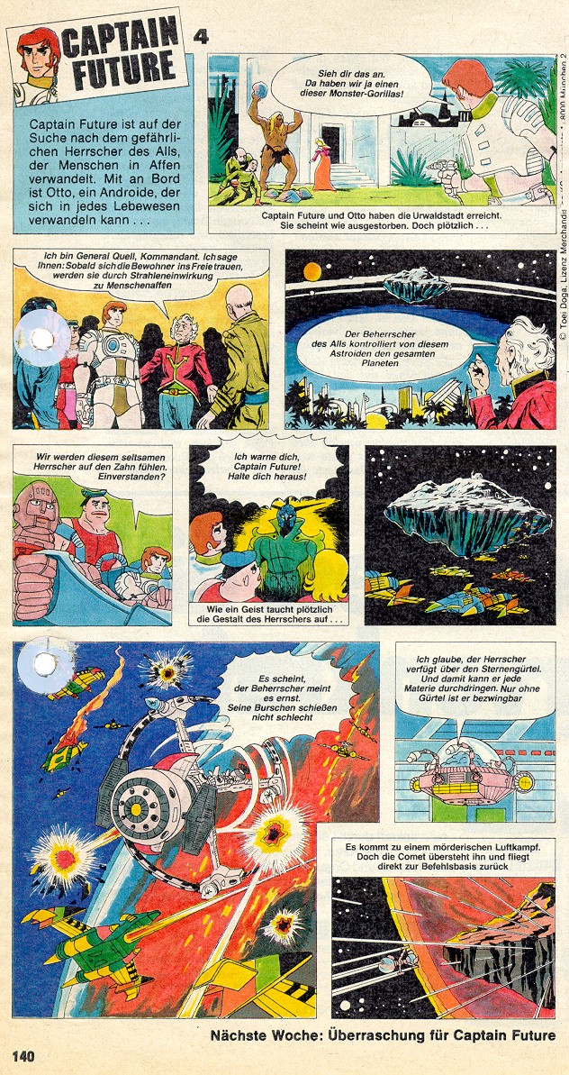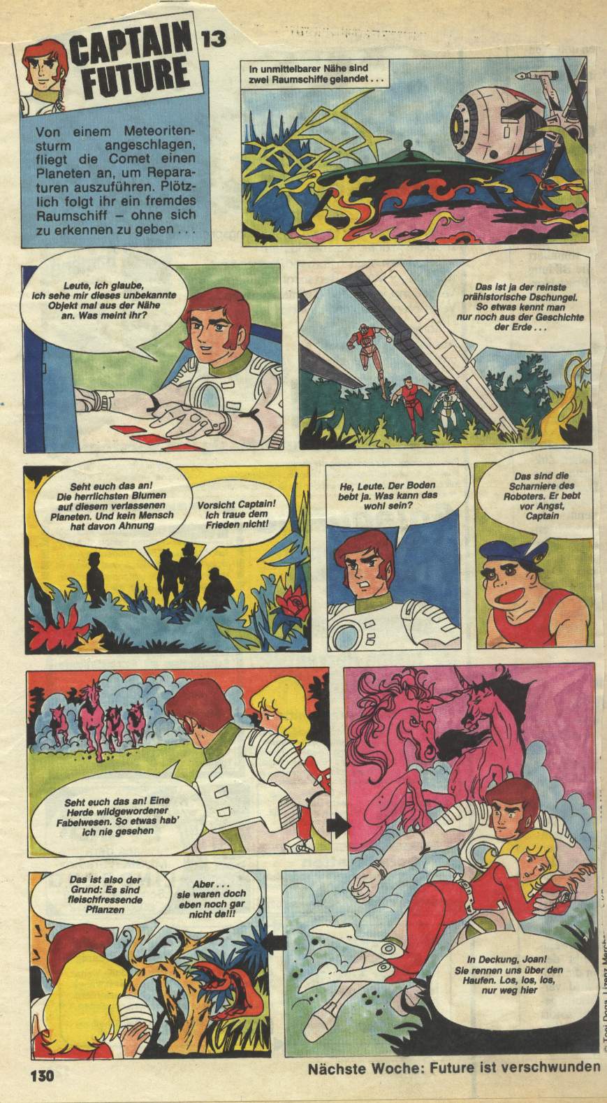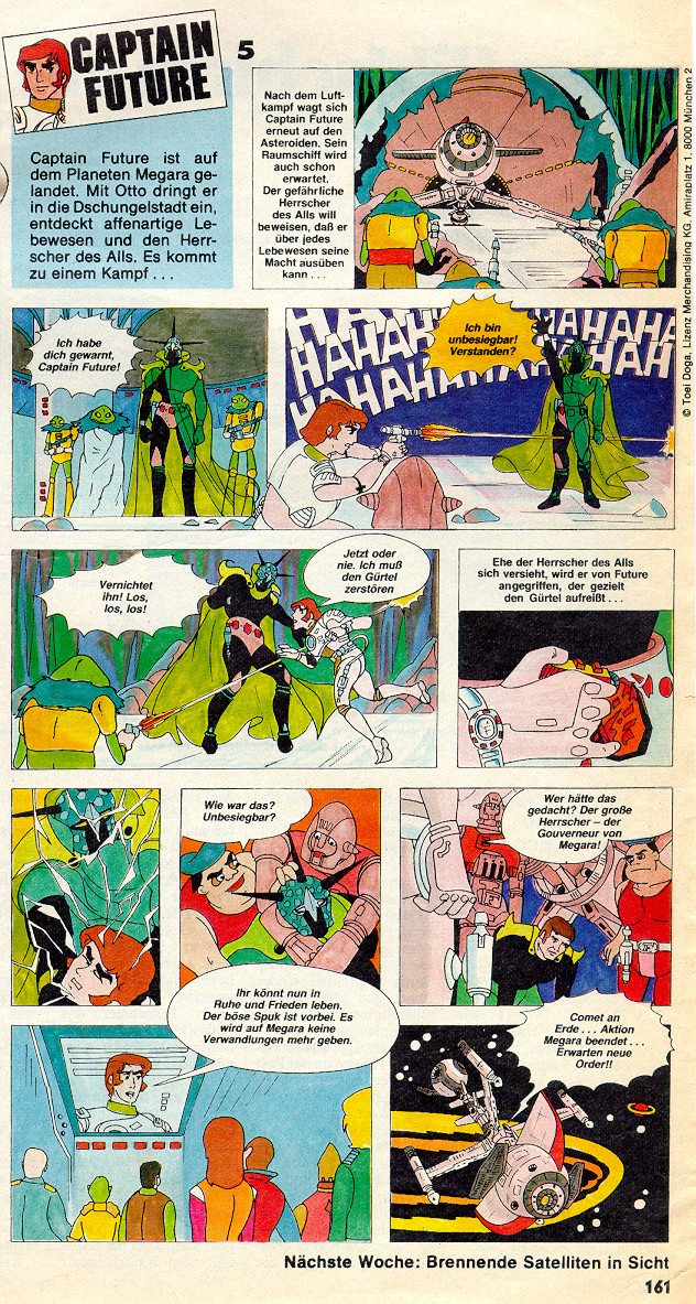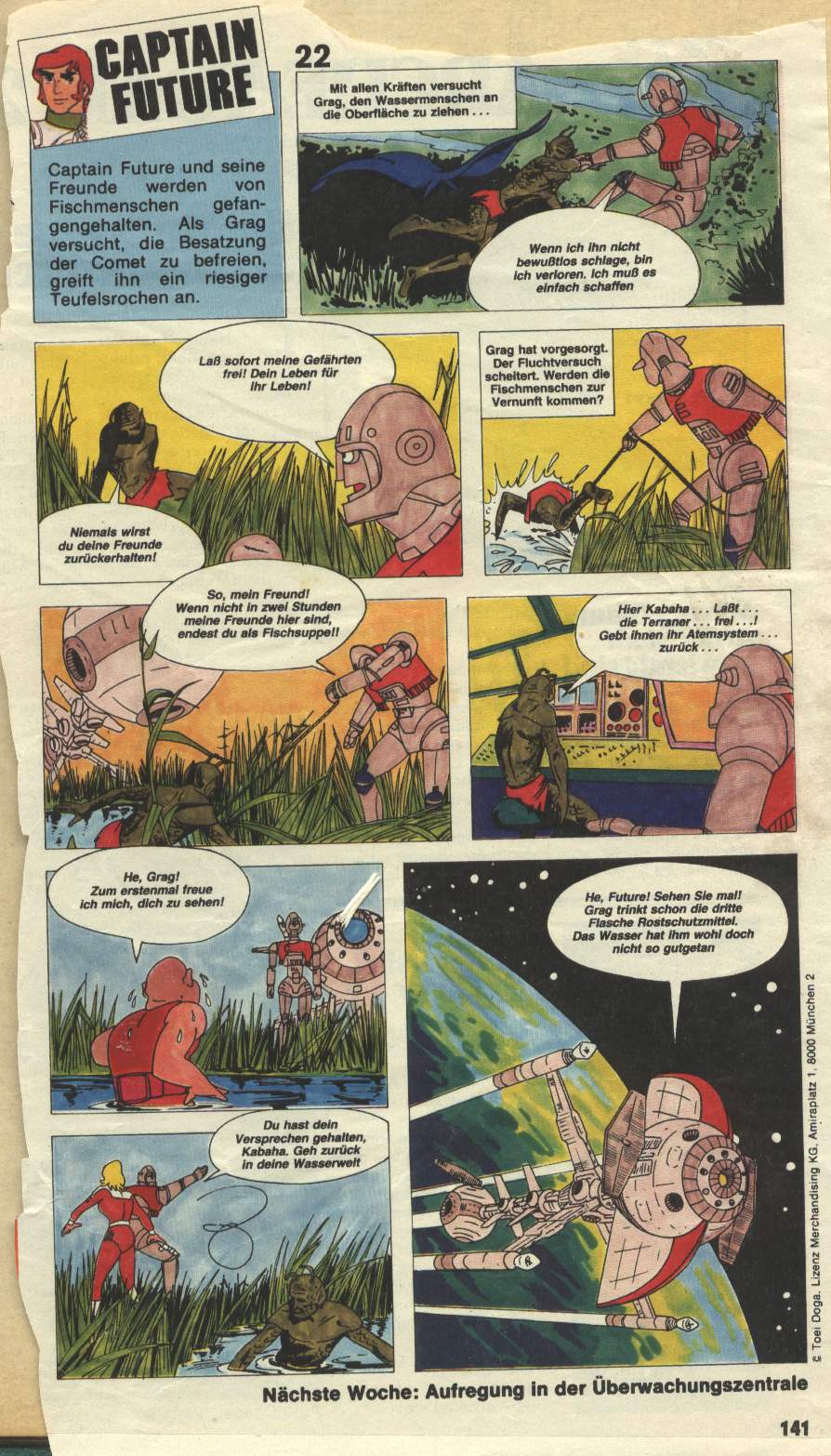 Mit der Erstausstrahlung von Captain Future Anfang der 80er Jahre wurden in der Fernsehprogrammzeitschrift 'Hörzu' 1-seitige Fortsetzungsgeschichten veröffentlicht.