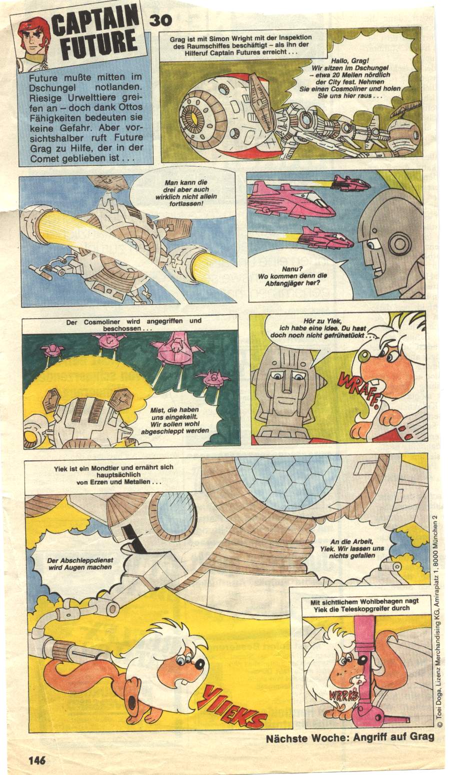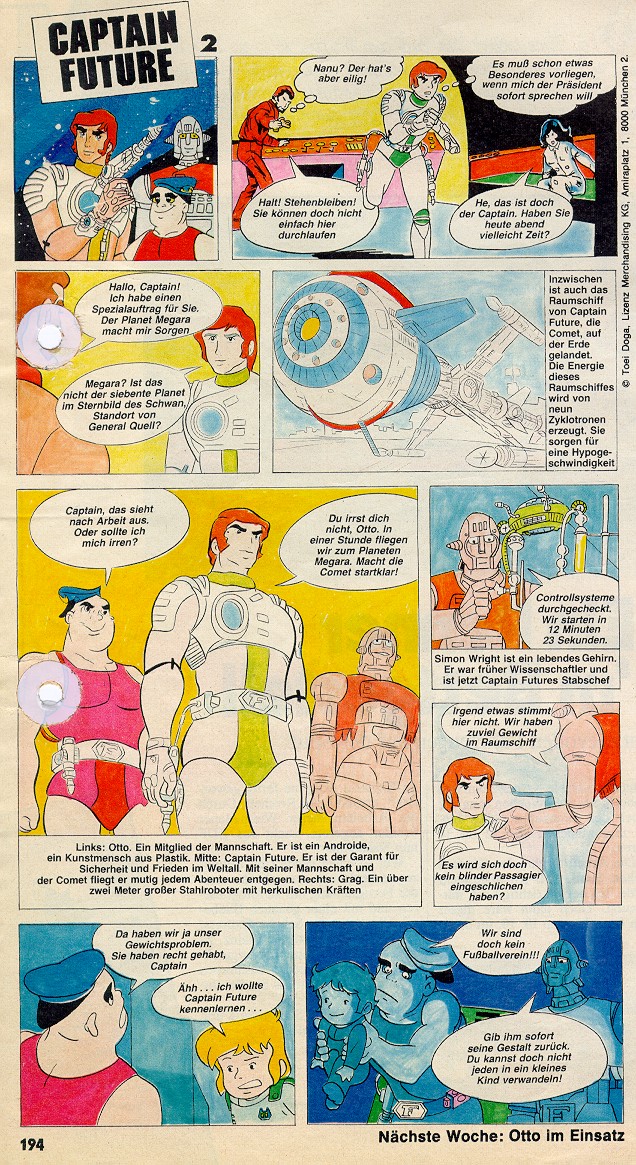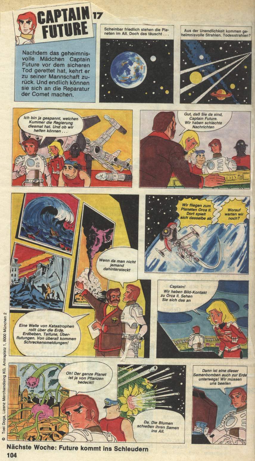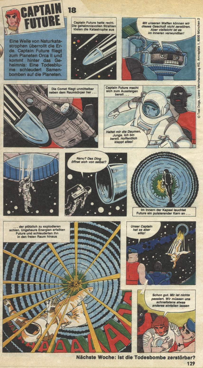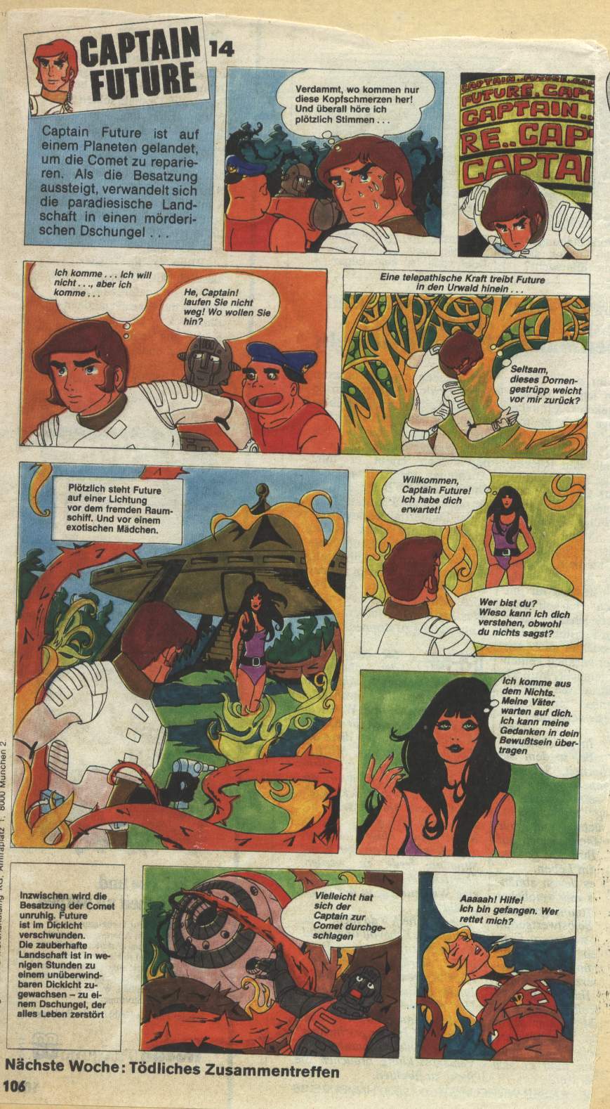 Mit der Erstausstrahlung von Captain Future Anfang der 80er Jahre wurden in der Fernsehprogrammzeitschrift 'Hörzu' 1-seitige Fortsetzungsgeschichten veröffentlicht.